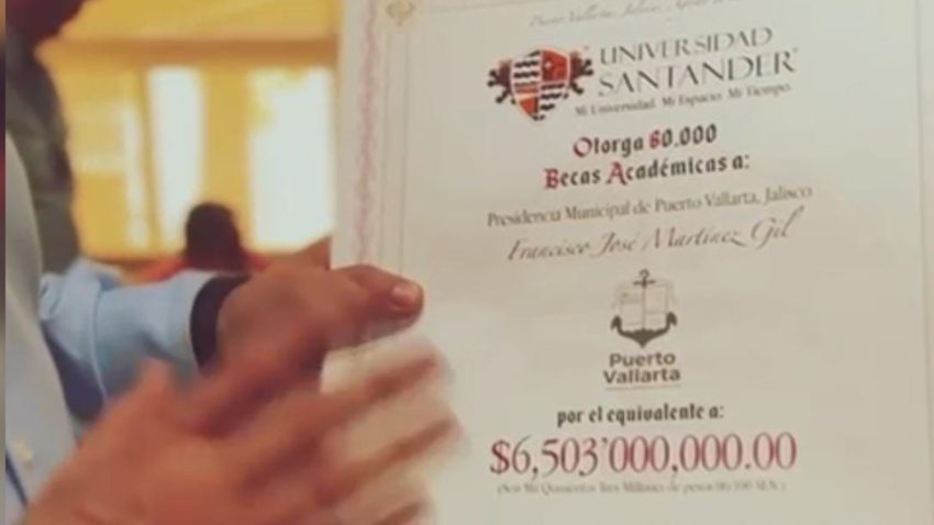 Como parte de las gestiones del beneficio del presidente municipal interino, Francisco Javier Martínez Gil, en beneficio de la población vallartense, se concretó la entrega de 60 mil becas académicas al 74 por ciento por parte de la Universidad de Santander, mismas que representan cerca de 6 mil 500 millones de pesos que servirán para fortalecer la educación media superior y profesional en nuestro puerto.