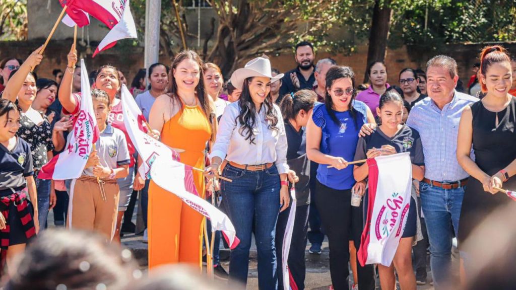 A la llegada de la alcaldesa Mirtha Villalvazo Amaya, los alumnos la recibieron con un ramo de flores, y le expresaron su afecto, pues ella atendió la solicitud para la construcción de este domo, que tanto de los directores de la escuela, como los padres de familia, habían solicitado y hoy fueron testigos del arranque de esta obra.