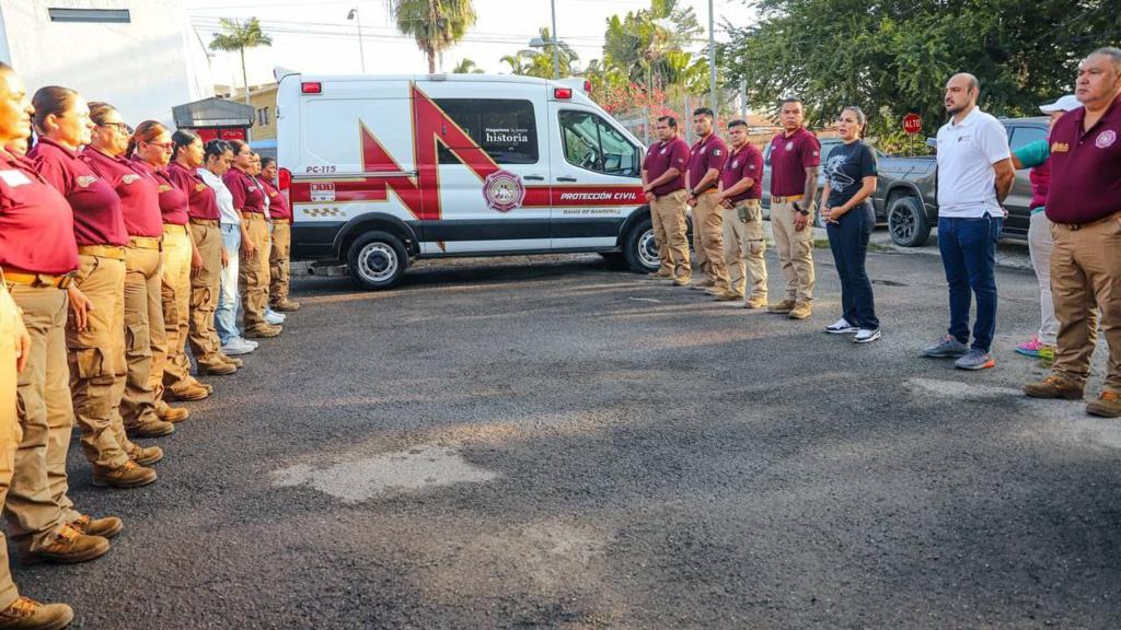Participa Mirtha Villalvazo en el cambio de guardia de esta mañana, en la Dirección de Protección Civil de Bahía de Banderas. Invitó a los integrantes de la corporación a trabajar unidos en beneficio del municipio.