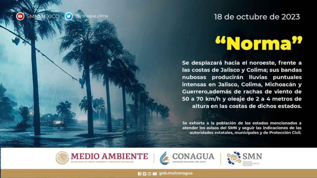 El Servicio Meteorológico Nacional, entidad oficial del Gobierno de México, ha emitido un aviso crucial sobre la situación meteorológica actual. La tormenta tropical Norma está intensificándose gradualmente al suroeste de las costas de Colima y Michoacán. Esta tormenta ha disminuido su velocidad de desplazamiento, lo que ha llevado a un aumento en las bandas nubosas y, como resultado, hay una mayor probabilidad de lluvias muy fuertes a intensas en las regiones occidental y sur del país.