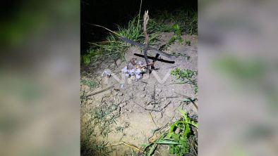 Más tarde decidieron dar aviso a la Policía, por lo que los agentes llegaron al terreno baldío donde encontraron una pequeña cruz clavada en el suelo y a unos metros hallaron la caja donde decía que había restos humanos, donde al revisar verificaron y luego informaron que efectivamente había pequeños huesos entre una almohada y un mono de peluche.
