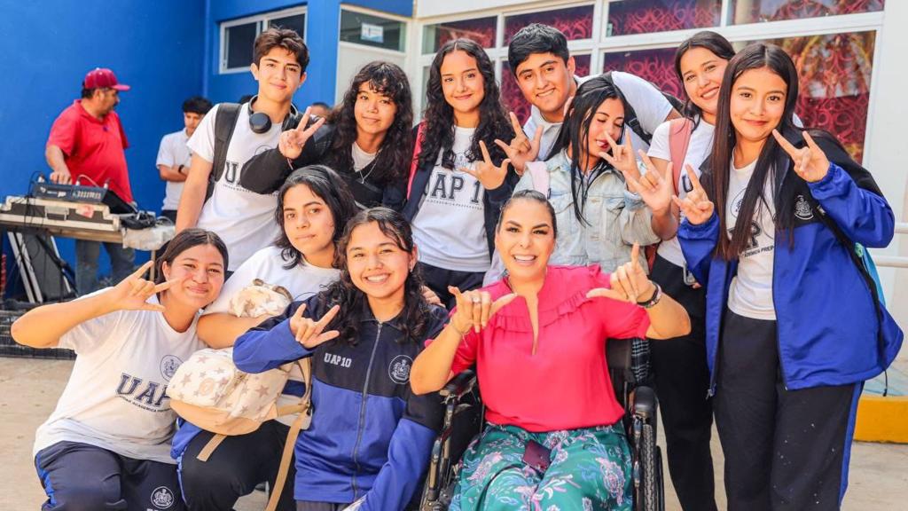 «Quiero decirles a los jóvenes de la Unidad Académica Preparatoria 10 que teníamos contempladas para ustedes entregar 27 computadoras, pero decidimos aumentarlas a 54», dijo la alcaldesa.