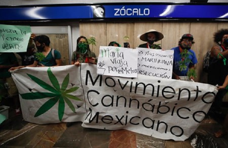 Los manifestantes abordaron un convoy y con altavoz en mano decían a los pasajeros no estar de acuerdo con la medida, pues consideran que se les criminaliza. No respondamos a las agresiones, no estamos de acuerdo en que hayan puesto caninos para perseguir a todos los consumidores responsables de cannabis