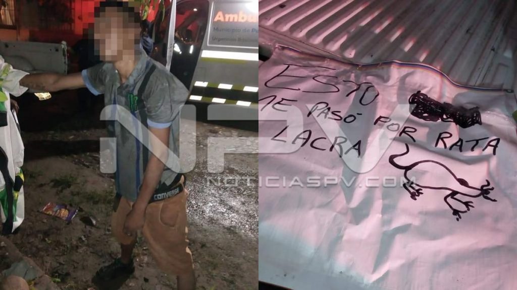 Al lugar acudieron los elementos asignados a la vigilancia del área, quienes al llegar encontraron a un sujeto amarrado a un árbol y al pie tenía una cartulina en color blanco que decía, «esto me pasó por rata lacra» y un lado estaba pintada una rata.