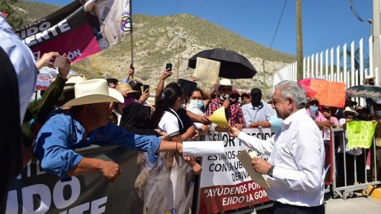 El presidente encabezó este viernes la presentación del proyecto Agua Saludable para La Laguna, en el municipio de Ciudad Lerdo, donde saludó a cientos de personas sin respetar la sana distancia. De hecho, retomó su costumbre previa a la pandemia de saludar de mano a los asistentes.