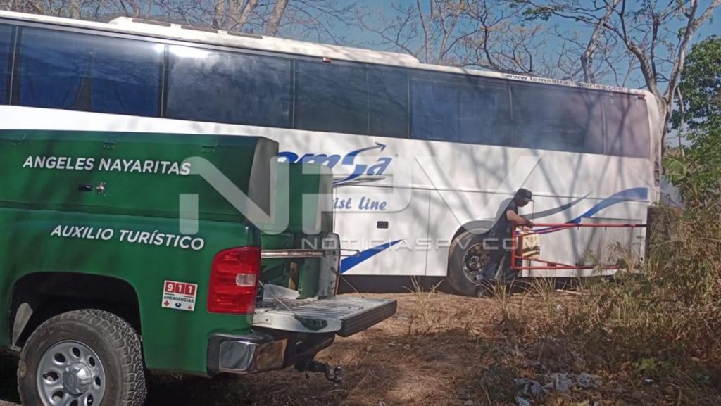 Los elementos brindaron asistencia de manera rápida a un autobús de pasajeros que quedó varado y presentó un conato de incendio en su parte trasera. El incidente ocurrió en el tramo que va de Las Varas a Compostela, en la carretera mencionada anteriormente.