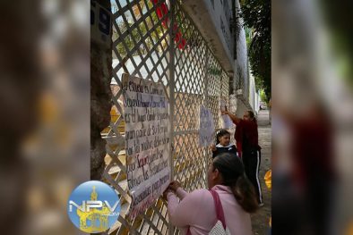 La entrada de los pequeños a la escuela es a las 8 de la mañana de lunes a viernes, pero este lunes 16 de diciembre, había madres de familia, listas colocando cartulinas en la puerta de ingreso.