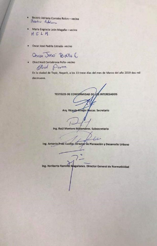 Mientras tanto, la persona que se nombró como enlace con el gobierno del estado, en compañía de otros habitantes afines al gobierno municipal, a escondidas del resto de la comunidad, viajaron a la ciudad de Tepic y en las instalaciones de la Secretaría de Obras públicas, firmaron en nombre del pueblo un documento de aceptación de asignación del recurso pero para el proyecto original del gobierno municipal, lo que generó descontento generalizado a tal grado que llamaron traidores a quienes formaron dicho documento y de igual manera al gobierno municipal y estatal por considerar que se les había tomado el pelo.