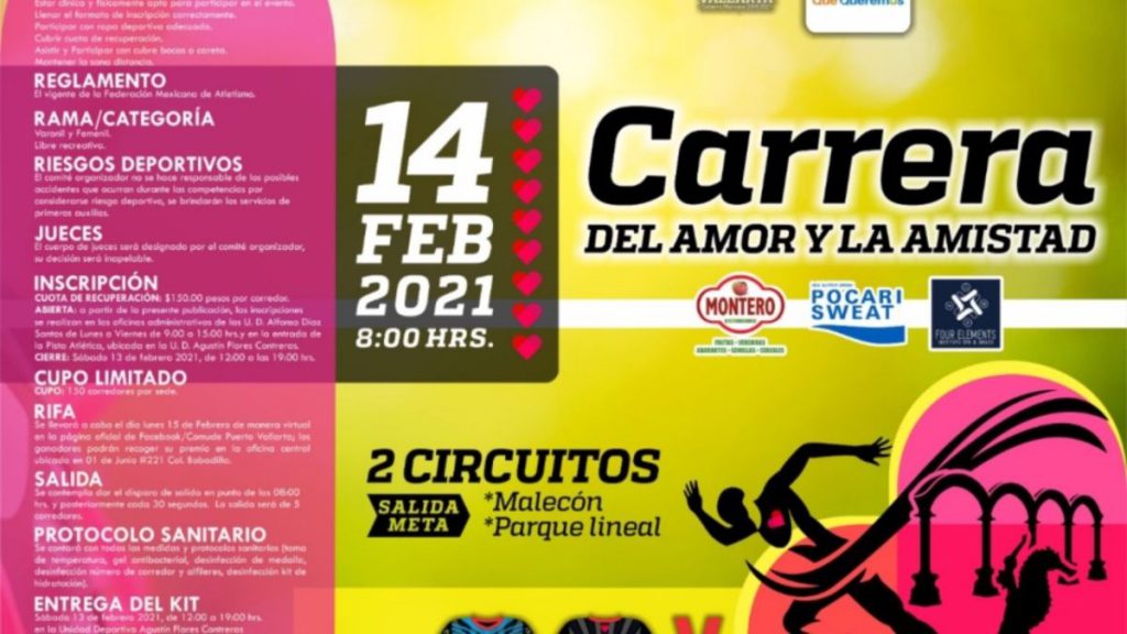 Teniendo como escenarios el malecón y el parque lineal de del río Pitillal, el Gobierno Municipal que encabeza Arturo Dávalos Peña, a través del Consejo Municipal del Deporte (Comude), dio a conocer que el domingo 14 de febrero, tendrá lugar la Carrera Atlética del Amor y la Amistad.