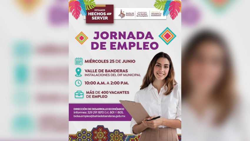Como parte del compromiso del gobierno municipal de acercar oportunidades de desarrollo a la ciudadanía, la Dirección de Desarrollo Económico de Bahía de Banderas realizará este miércoles 25 de junio, una Jornada de Empleo en las instalaciones del DIF Municipal, ubicadas en Valle de Banderas.