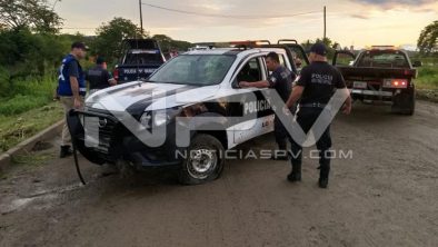Una unidad radiopatrulla de la Policía Municipal resultó con cuantiosos daños materiales y los elementos con lesiones, luego de que el agente policial que la conducía perdió el control y se salió de la cinta asfáltica, quedando la misma abajo de un arroyo, esto por la carretera a La Cruz de Huanacaxtle.