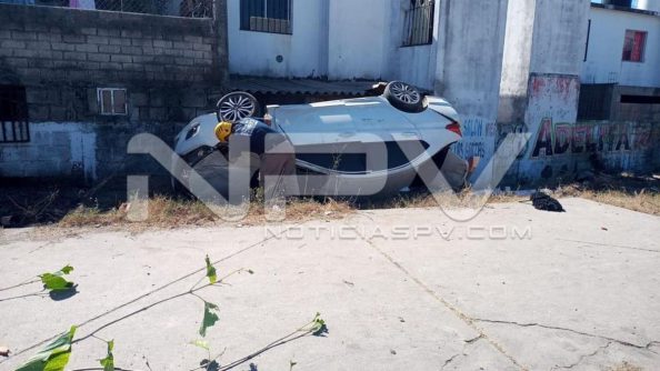 Al llegar al lugar de los hechos se encontraron un vehículo volcado y estrellado literalmente, contra la barda del fraccionamiento en mención, sitio en donde se encontraban unas personas, al parecer, que viajaban a bordo del mismo, las cuales por fortuna no presentaba lesiones de gravedad.