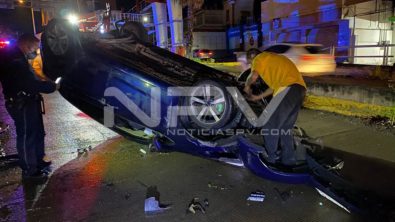 Tepic.- Aparatoso accidente se registró sobre la avenida Insurgentes en cruce con calle Prolongación Puebla en la ciudad de Tepic.