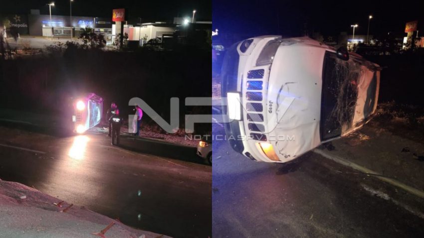 Aparatosa volcadura se registró sobre el Boulevard Riviera Nayarit, a la altura de plaza del Lago Real, en donde una camioneta que intentó cambiar de los carriles centrales a los laterales, terminó volcado y con daños considerables, luego de que otro vehículo se le atravesó y generó el percance.