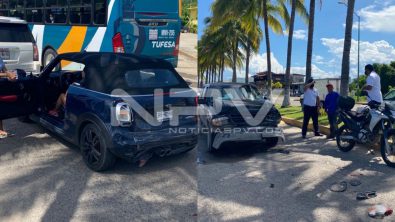 Por tal motivo hasta ese lugar arribaron los Bomberos del Estado y Paramédicos de Protección Civil de Bahía de Banderas, quienes auxiliaron a dos personas del sexo femenino que se encontraban arriba de un auto Mini Cooper, que momentos antes fue impactado en la parte de atrás por una camioneta Ford, Explorer, a las que valoraron y luego sus familiares las llevaron a revisión médica, a las que afortunadamente no se les apreciaban lesiones de gravedad.