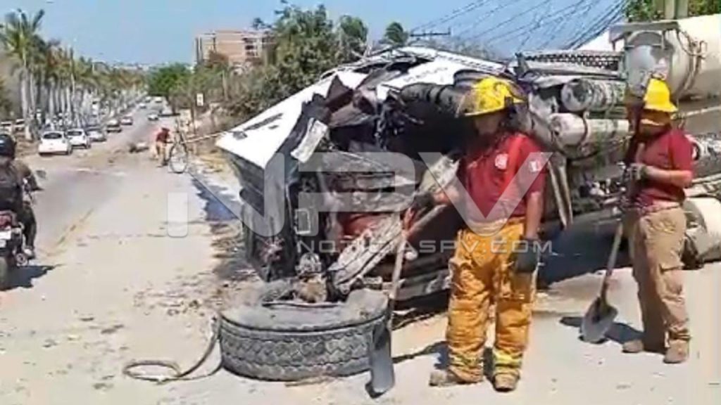 Aparatosa volcadura de un camión tipo trompo, se registró la tarde de este martes sobre el boulevard Riviera Nayarit, en el municipio de Bahía de Banderas, dejando como saldo daños materiales considerables.