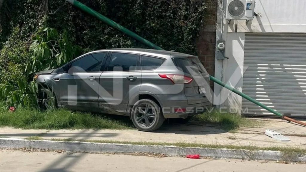 Un aparatoso accidente vial se registró la tarde de este martes en el cruce de la calle Cleofas Salazar y la avenida Estaciones, en la localidad de Bucerías, donde una camioneta terminó impactada contra un poste de alumbrado público y dentro de un terreno particular, mientras que un segundo vehículo quedó sobre la vía pública.