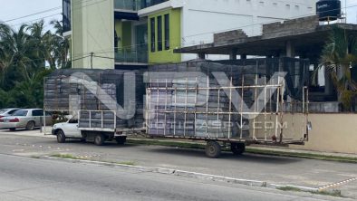 Los hechos ocurrieron este viernes 30 de Julio en la lateral con dirección de norte a sur del Boulevard Riviera Nayarit en Bucerias, donde reportaron que una camioneta Nissan, con tubulares y placas PE-68-999 de Nayarit, había aplastado dos vehículos con el remolque que jalaba, el cual se inclinó y le cayó encima a una Jeep, tipo Patriot de color blanco con placas JHV-27-11 de Jalisco y a un Versa de color tinto con placas JSM-96-16.
