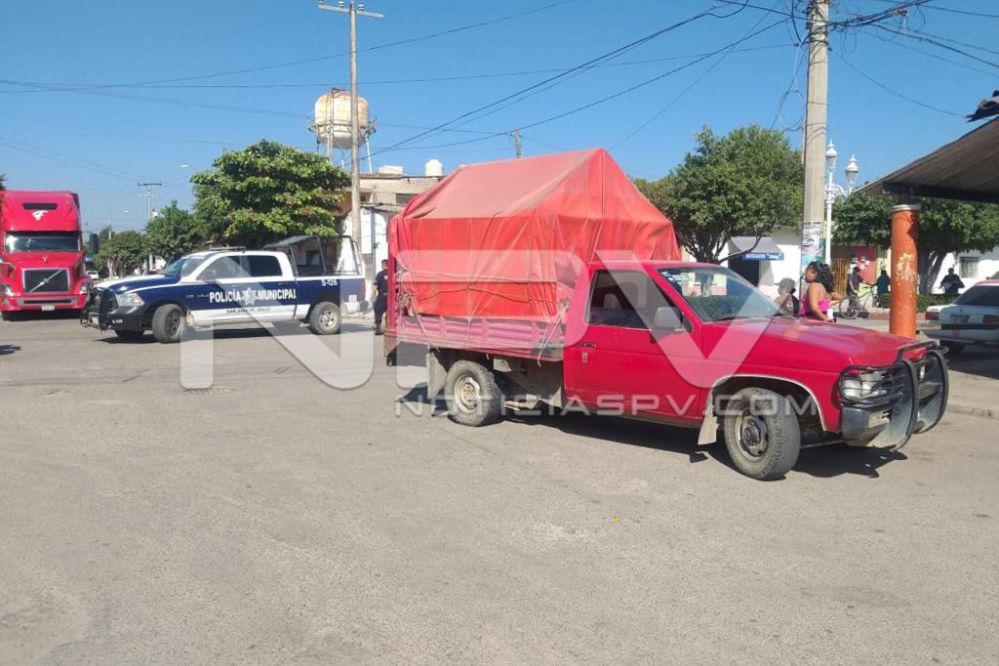 Se trata de una camioneta de la marca Nissan, tipo estaquitas, de color rojo, con las placas de circulación PE-87-194, del estado de Nayarit, que circulaba por la calle 5 de Mayo, y al llegar el conductor al cruce de la avenida Lázaro Cárdenas, se cruzó y le cortó la circulación a la unidad radio patrulla, una Dodge, RAM, de color azul con blanco, señalada con el número S-126 y placas de circulación PE-88-998, de Nayarit, según informaron testigos en el lugar.