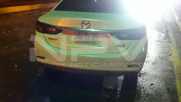 Se trata de un Mazda, de color blanco, modelo 2014, con placas JRH-71-32 de Jalisco que conducía momentos antes una mujer que dijo llamarse Karen Saray, vecina de Puerto Vallarta, con domicilio en la colonia Emiliano Zapata y un Jetta, azul, modelo 1997, con placas de Nayarit, conducido por Juan José González, vecino de la colonia Aramara, en Puerto Vallarta.