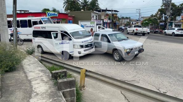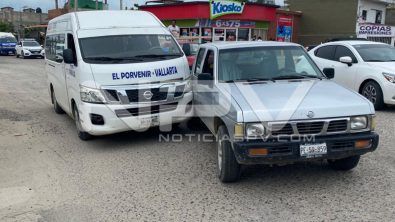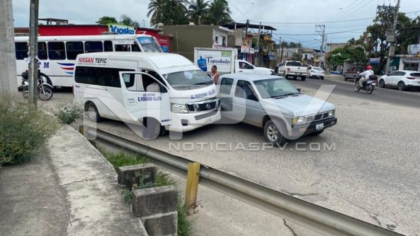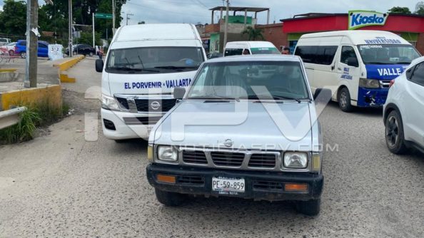 Hasta ese sitio arribó un oficial de Tránsito Municipal a bordo de una unidad moto patrulla, quien informó a su base que se trata de un choque entre una camioneta Nissan, tipo Pick Up, de color gris con placas PE-59-859 de Nayarit y una Urvan, Nissan, NV350, de color blanco con placas 89-06-MDE del transporte público colectivo con ruta Porvenir-Vallarta.
