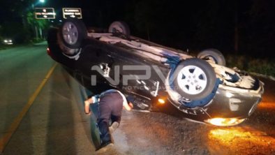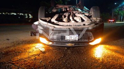 Aparatoso choque volcadura se registró la madrugada de este lunes sobre el Boulevard Rivera Nayarit, a la altura del puente peatonal de La Mega, en el poblado de Bucerías municipio de Bahía de Banderas, lo que generó la movilización de las autoridades municipales encargadas de vialidad, así como de los paramédicos del cuerpo de Bomberos y Protección Civil.