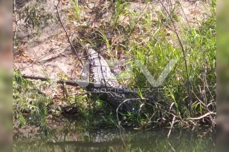 Ejidatarios y personas que pasaban por el lugar reportaron a las autoridades que ahí se encontraba el reptil echado a la orilla de un charco del Rio Ameca