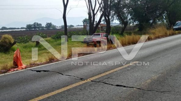 A pesar de que la parte de la grieta que pasa por los carriles de la carretera estatal ya fue reparada por personal de Secretaría de Infraestructura y Obra Pública (SIOP), la