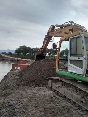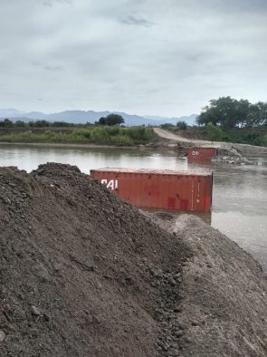 En apoyo al trabajo de los agricultores y ganaderos del ejido San José del Valle, por indicaciones del presidente municipal de Bahía de Banderas, doctor Jaime Cuevas Tello, el módulo de maquinaria de Servicios Públicos Municipales, apoya a dicho Comisariado Ejidal para restablecer el paso sobre el río Ameca, que conduce hacia el Paso del Guayabo en Puerto Vallarta, donde también se realizan los trabajos correspondientes sobre el cauce del río Mascota.