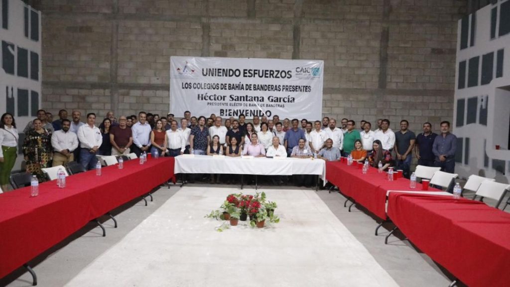El Colegio de Ingenieros Civiles y Arquitectos de Bahía de Banderas A.C y el Colegio de Arquitectos e Ingeniero Civiles de la Riviera Nayarit (CAIC) celebraron una asamblea conjuntamente para felicitar al presidente municipal Héctor Santana García, ponerse a disposición del primer edil y comenzar con el proyecto de obra que disponga su plan de gobierno para el periodo 2024-2027.