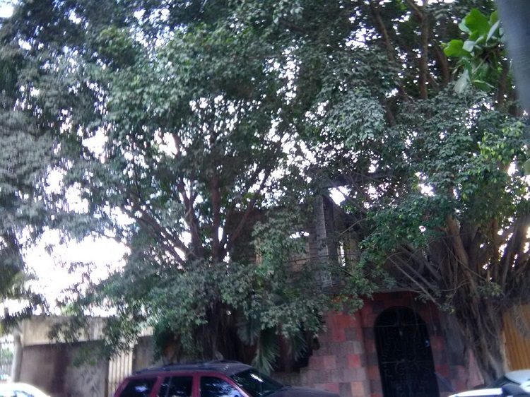 Vecinos del área reportan esta situación y piden la intervención de Servicios Públicos Municipales para que poden estos árboles. Son dos árboles que consideran de mucho peligro para quienes pasan por ahí. Comentan que si hay iluminación en esas calles, pero por lo frondoso de los árboles y porque se ha visto ahí como se trepan los malandrines de la colonia, esa casa y la copa de los árboles se ha convertido en nido de malvivientes.