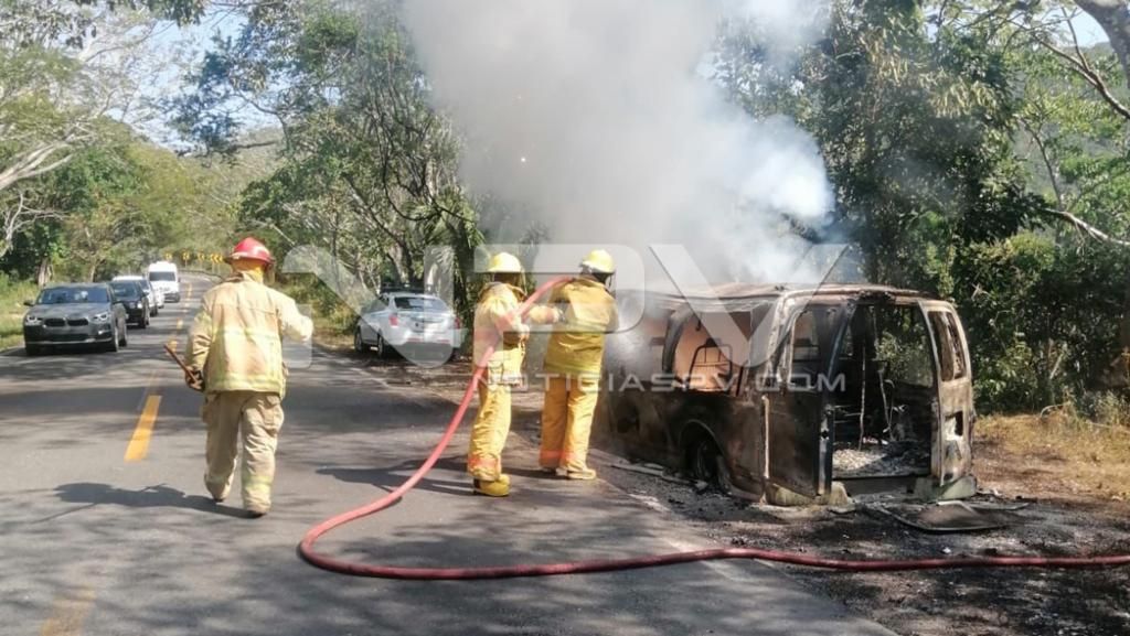 Otro vehículo más se incendió cuando circulaba sobre la carretera federal 200, dentro del municipio de Compostela, informó la Dirección de Seguridad Pública, Vialidad y Protección Ciudadana.