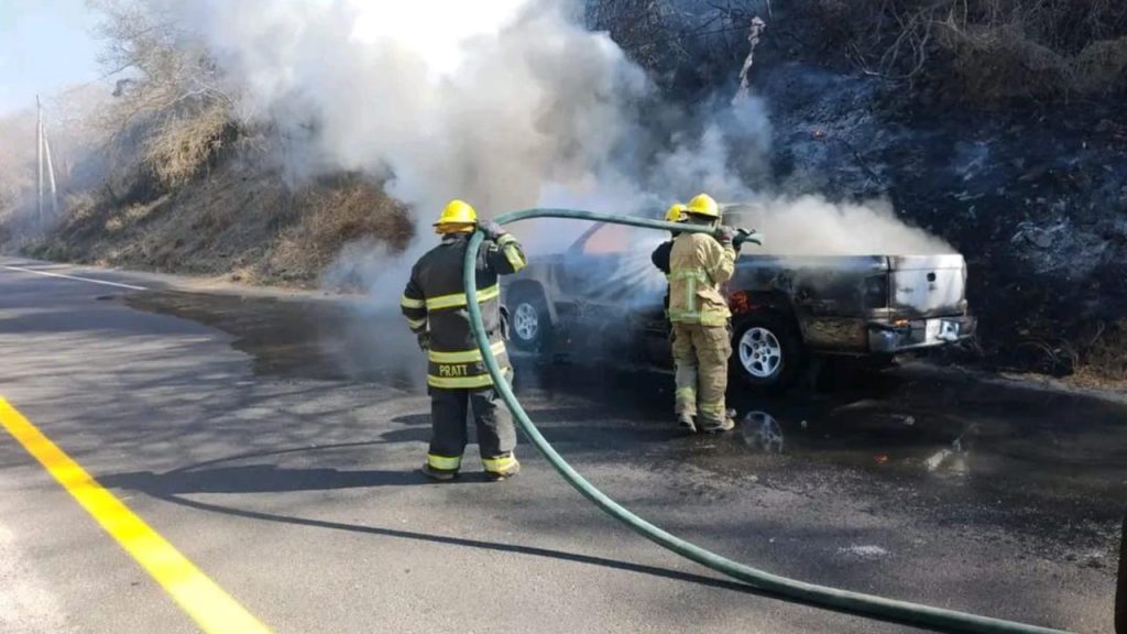 Al arribar al lugar, personal de Protección Civil encontró una camioneta Dodge Dakota color gris, con placas del estado de Jalisco envuelta en llamas.