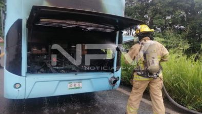 Informaron los elementos que se trata se un autobús de color azul,  procedente de Puerto Vallarta, que se dirigía a Ixtlahuacan del Río, en Jalisco, el cual estaba siendo consumido por el fuego en la parte trasera donde se encuentra el motor.