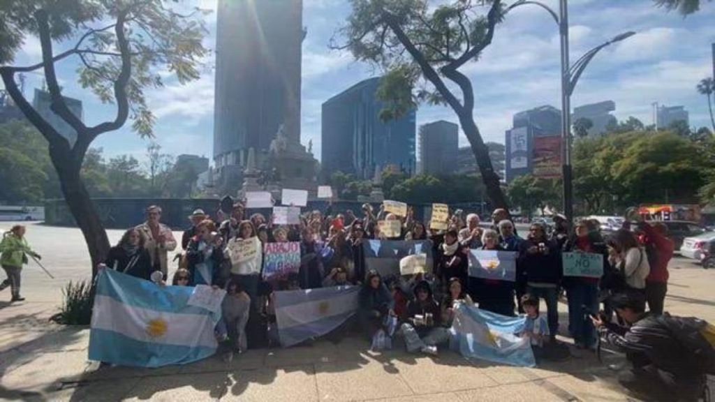 CIUDAD DE MÉXICO (apro).- Argentinos radicados en México se manifestaron frente al consulado del país en la Ciudad de México, en protesta por el Decreto de Necesidad y Urgencia (DNU) anunciado por su nuevo presidente Javier Milei, que contiene alrededor de 300 medidas para desregular la economía, lo que involucra varias cuestiones, como sindicatos, obras sociales, importaciones e incluso al sector inmobiliario.