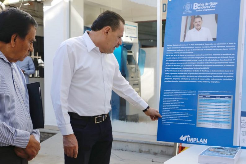 El alcalde bahiabanderense, agregó que el objetivo es generar un documento donde sociedad y gobierno, decidirán cómo se aprovecha el territorio municipal, de acuerdo a sus características, vocación, potencial y los riesgos que existen en nuestro territorio, estableciendo las políticas, programas, proyectos, estrategias y acciones de conservación, mejoramiento, crecimiento.