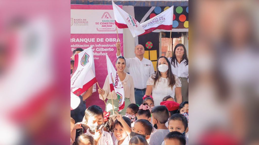 Bahía de Banderas, Nay., a 5 de diciembre de 2022. Esta mañana se llevaron los honores a la bandera que celebra cada lunes el XI Ayuntamiento, en esta ocasión con sede en el Jardín de Niños Gilberto Flores Muñoz en la localidad de Bucerías, en donde además se hizo el arranque de obra del bardeo perimetral y compactación terreno, para que las y los alumnos tengan mejores instalaciones, más seguras y dignas.