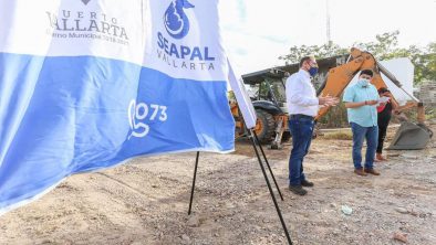 El director general de SEAPAL Vallarta, Santiago Centeno Ulín en compañía del alcalde Interino de esta ciudad, Jorge Quintero Alvarado, dieron el banderazo de arranque a la obra que llevará el servicio de agua potable a la colonia Vista Bahía.