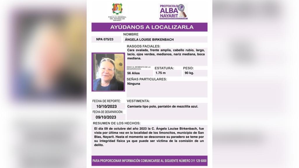 La Fiscalía General de Nayarit confirma la detención del presunto homicida de la empresaria canadiense Ángela Louise Birkenbach, desaparecida el 9 de octubre en San Blas y encontrada asesinada el 11 del mismo mes.