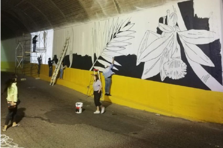 La intervención artística de la pared interior del túnel “chico” en sentido sur a norte, se realizó en el mes de febrero durante seis jornadas nocturnas, en las que se interrumpió el tránsito de manera parcial con apoyo de la subdirección de Vialidad. Previamente, las direcciones de Servicios Públicos y Mantenimiento de Bienes e Intendencia, respectivamente, prepararon el área con poda, pintura e iluminación.