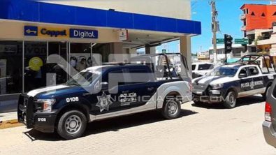 Fuerte movilización de las autoridades municipales y estatales se registró en el poblado de Las Varas, luego de que reportaran el asalto a mano armada a la tienda Coppel, ubicada en el centro del poblado.