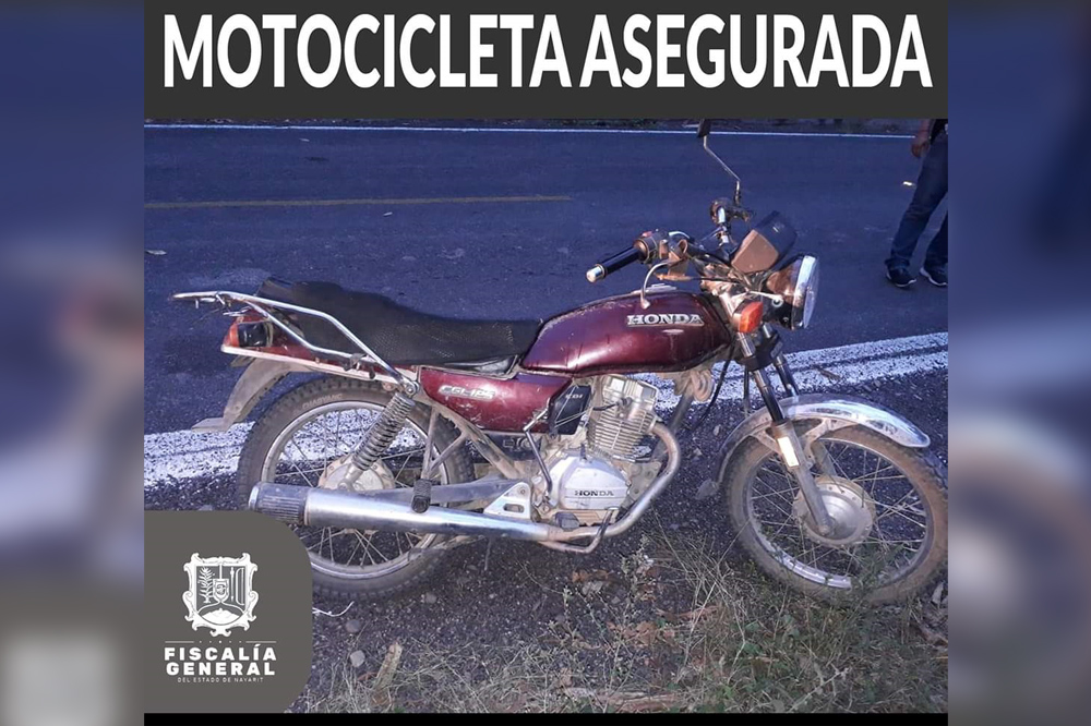 Personal de la Fiscalía General del Estado de Nayarit, adscritos a la comandancia de San Juan de Abajo, recuperaron una motocicleta en la Sierra de Vallejo, que resultó con reporte de robo, misma que fue asegurada y puesta a disposición de la autoridad competente.