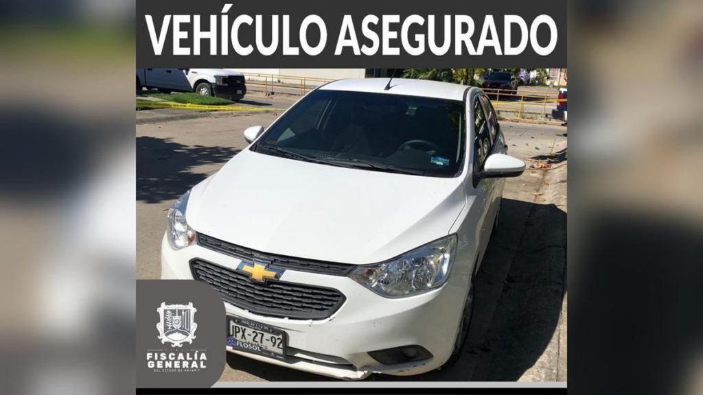 La Fiscalía de Nayarit informó que la unidad de referencia es de la marca Chevrolet, tipo Aveo, color blanco, modelo 2018, con placas de circulación JPX-27-92 del estado de Jalisco, la cual quedó a disposición del Ministerio Público para las diligencias legales pertinentes.