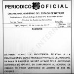 Cabe mencionar finalmente que el dictamen de procedencia para la desincorporaciòn de los predios del patrimonio municipal a favor de la UAN fue publicado en el periódico oficial de Nayarit con fecha 10 de junio del 2017.