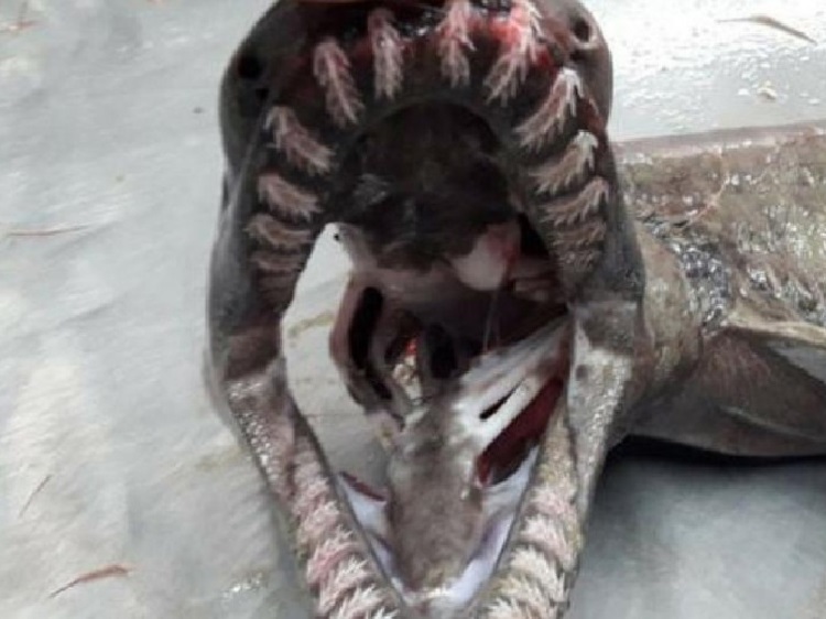Esta especie de tiburón tiene cierto parecido a las anguilas, pero cuentan con seis pares de hendiduras branquiales y 300 dientes tricúspides.