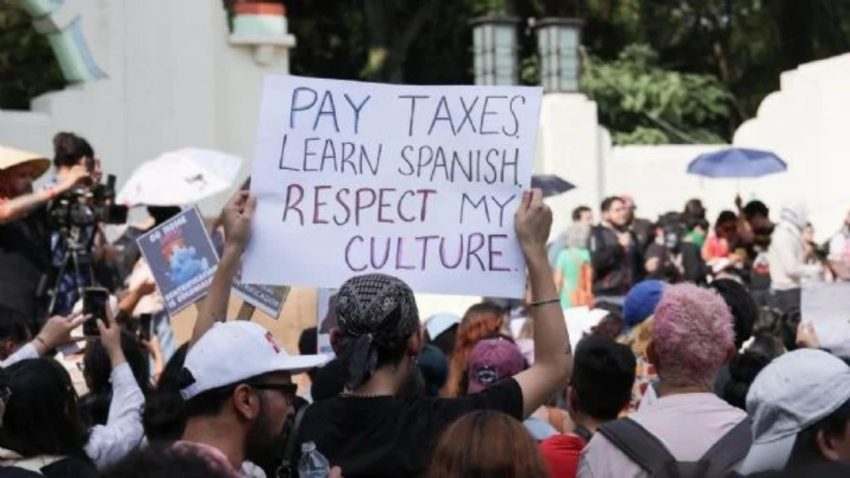 Otras fotografías muestran a mexicanos portando pancartas con leyendas en inglés alusivas a la presencia de estadunidenses en la Ciudad de México: “Pay taxes, learn spanish, respect mi culture” (paga impuestos, aprende español, respeta mi cultura).