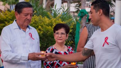 El presidente municipal, Luis Alberto Michel Rodríguez, y la presidenta del DIF Puerto Vallarta, María de Jesús López Delgado, participaron en la Vigilia Internacional en Memoria de las Víctimas del SIDA, realizada el pasado fin de semana en la plaza de El Pitillal, en la que participaron funcionarios municipales, a través de COMUSIDA Vallarta y organizaciones de la sociedad civil, que en esta ocasión sumaron también el recuerdo a las víctimas de Covid.