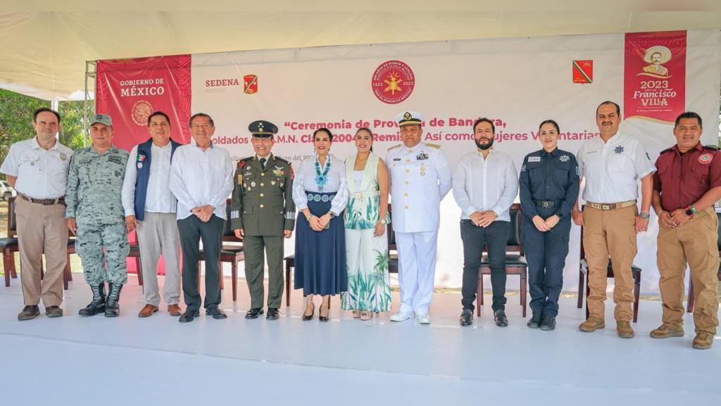 Bahía de Banderas Nay., 5 de mayo de 2023.- Este viernes, la presidenta municipal de Bahía de Banderas, Mirtha Villalvazo, acudió a la Ceremonia de Toma de Protesta a Conscriptos del Servicio Militar Nacional, tanto de la Marina Armada de México como del Ejército Mexicano, de la clase 2004; dicho acto se llevó a cabo en la Zona Militar 41, ubicada en el municipio de Puerto Vallarta.
