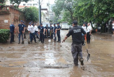 Desde las primeras horas de este lunes, el presidente municipal, Arturo Dávalos Peña, acudió a las zonas que resultaron afectadas por el paso de la depresión tropical ‘Narda’ por esta región, misma que provocó lluvias que desbordaron el río Cuale en las colonias Emiliano Zapata y Buenos Aires, por lo que junto al director de Desarrollo Social, Víctor Bernal Vargas, así como personal de Protección Civil y Bomberos, Mantenimiento, Servicios Públicos, Seguridad Ciudadana, Obras Públicas, entre otros, dio inició a las tareas de saneamiento y limpieza.