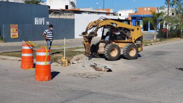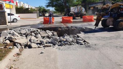 «Por instrucciones de nuestro Presidente Municipal, iniciamos un procedimiento para la valoración de daños por asentamiento en vialidades de éste fraccionamiento, proceder con la empresa constructora y atender la situación, ubicando un socavamiento por una fuga de agua potable en una caja de válvulas que no había sido detectada a tiempo, lo cual provocó hundimiento del suelo, así como, un socavón por debajo del pavimiento en la calle Golfo de México, donde iniciamos los trabajos éste lunes», expresó el director de Desarrollo Urbano Municipal, arquitecto Matías Verdín Heras.
